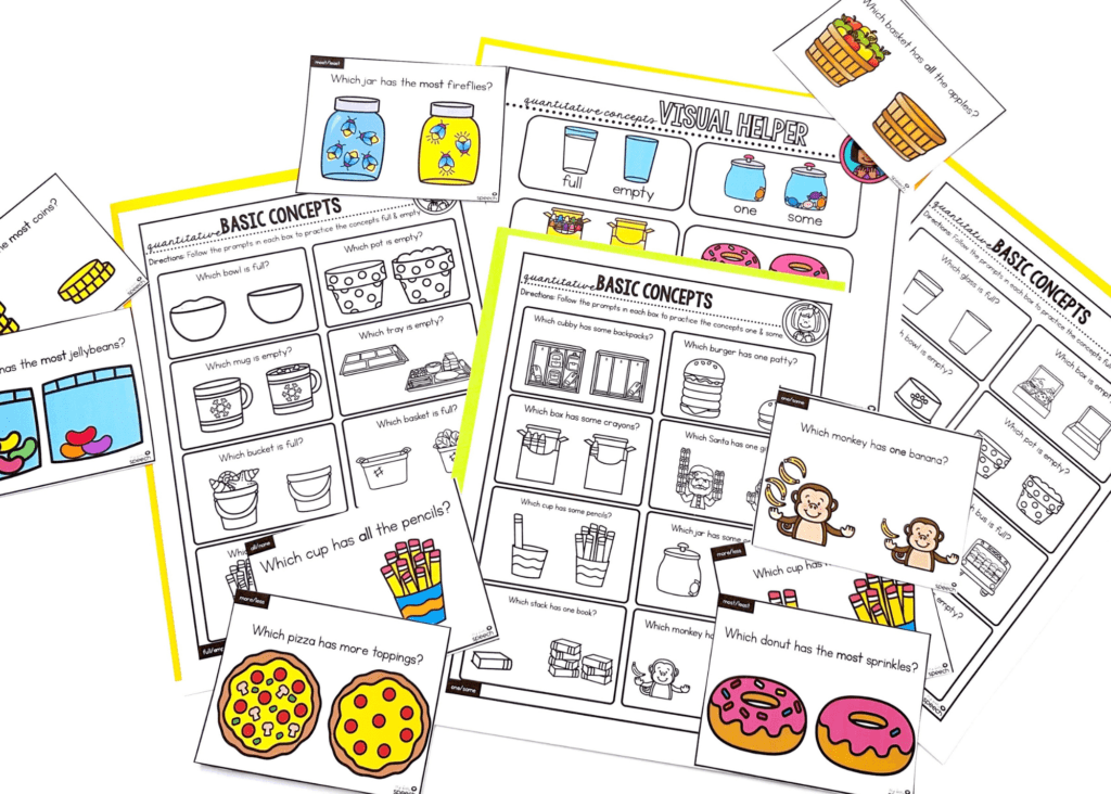 Quantitative Basic Concepts Kit includes visual anchor chart, sorting cards, task cards, no prep worksheets