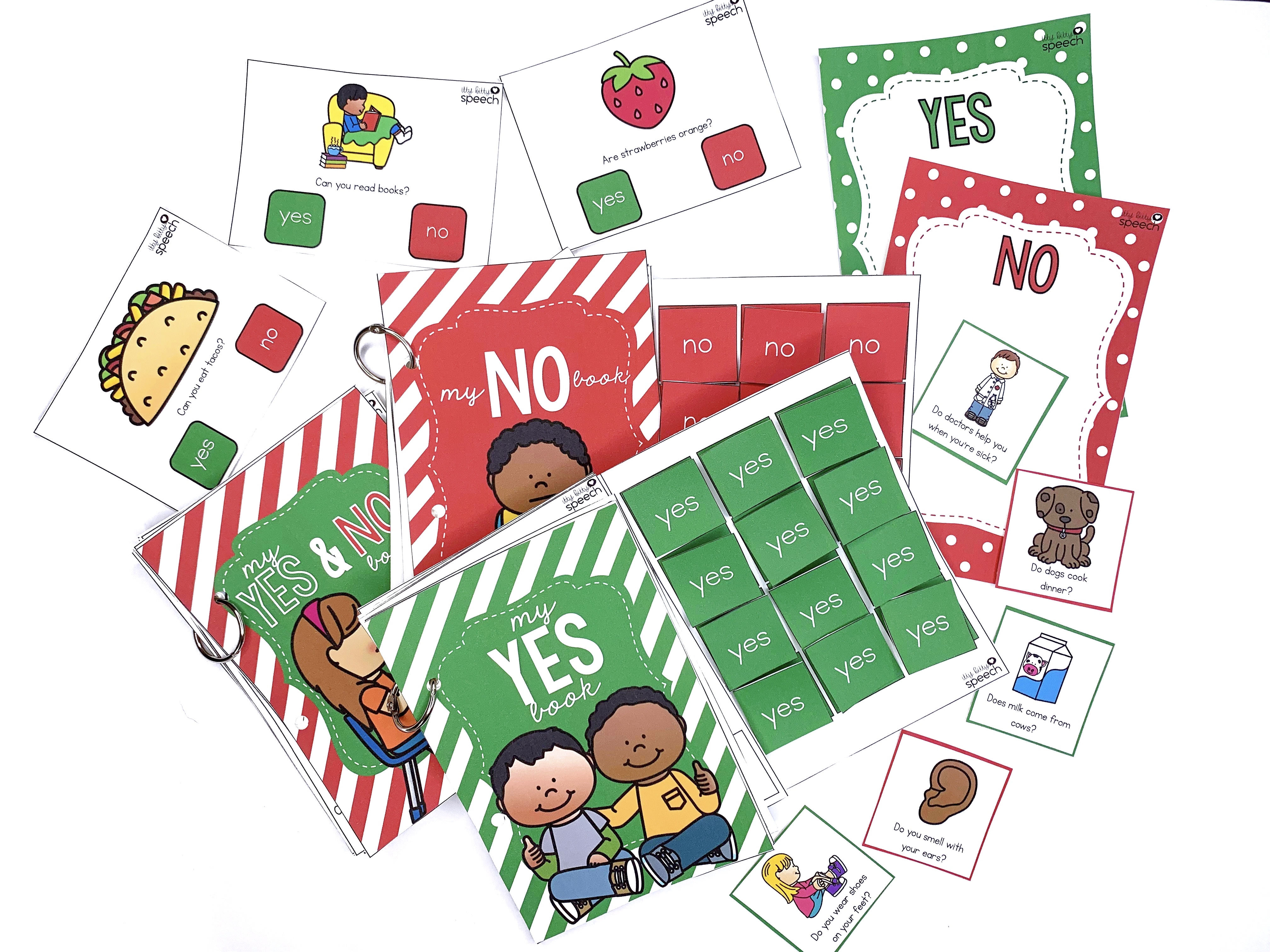 Yes/No question foundations – includes interactive books (3), sorting mats, and task cards all with errorless options when needed and boom deck