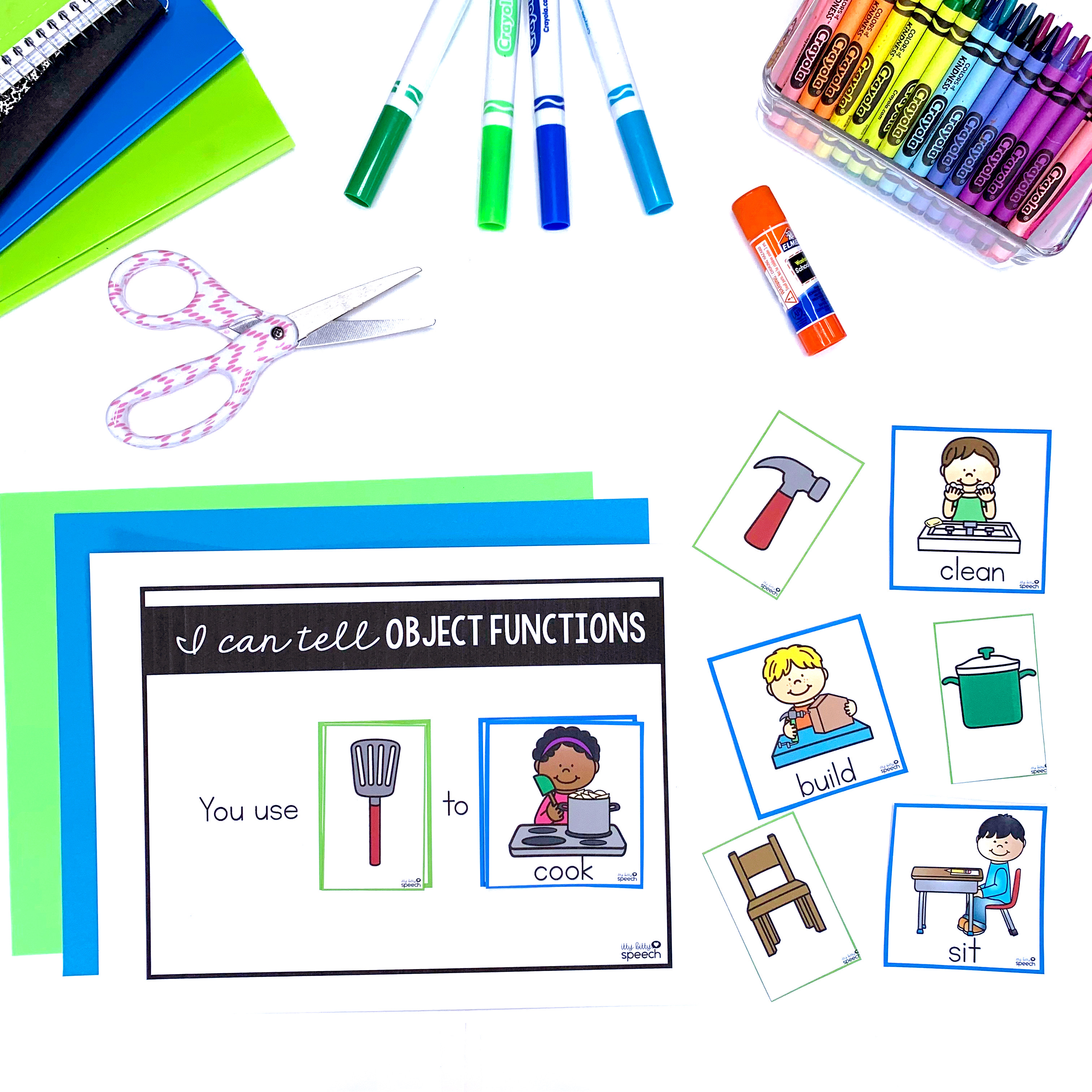 Object Functions Teaching Kit – includes object cards and function cards as well as a visual helper mat, no prep worksheets, boom deck