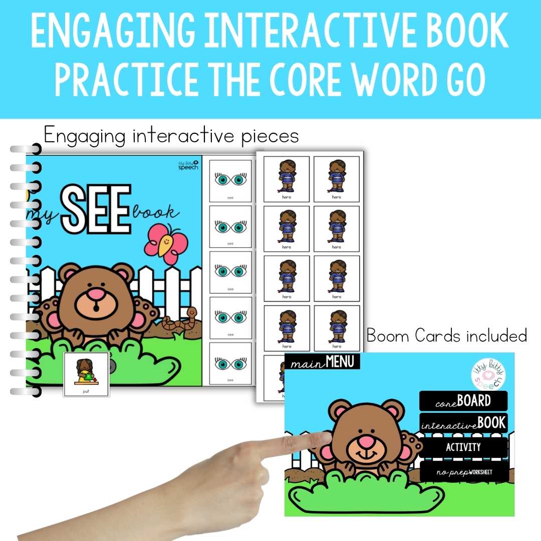 - Supports Parent Involvement: The included parent newsletter facilitates carryover of skills and understanding of the core word “SEE” at home.