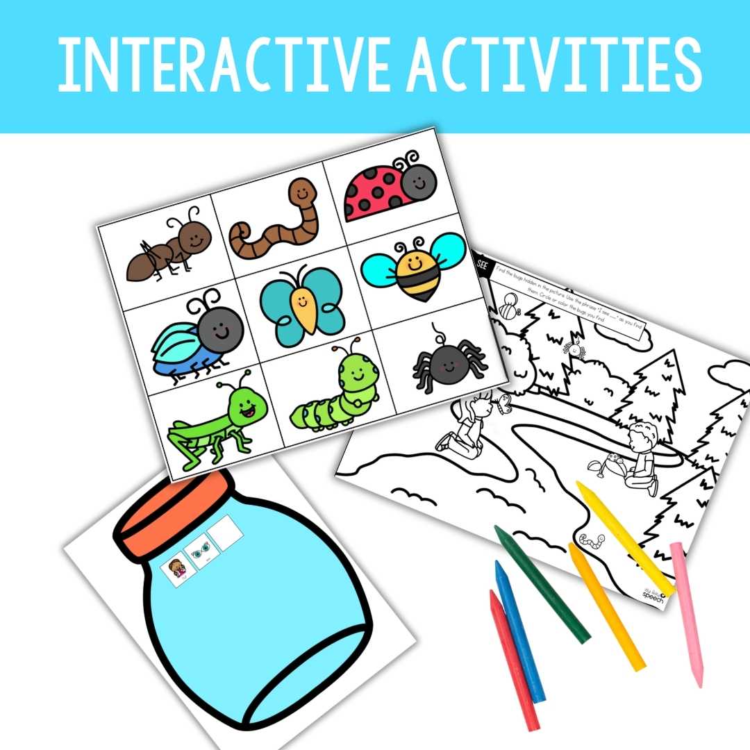 - Interactive “SEE” Bug Hunt Book: A captivating book for practicing two-word and three-word phrases with “SEE” in an errorless learning format within a delightful insect world.