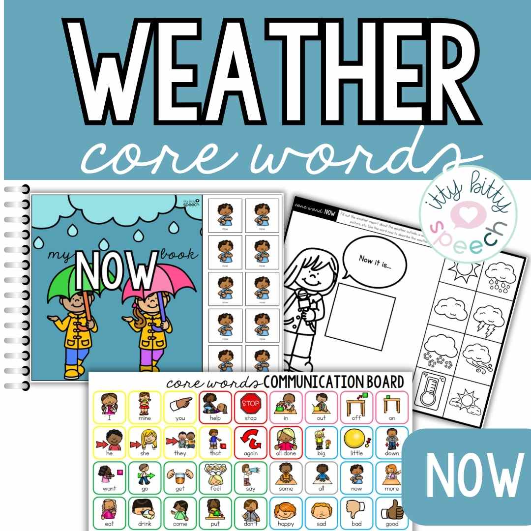 This is more than a weather unit—it’s a functional communication toolkit built around the word NOW, with hands-on ideas that support language growth through visuals, movement, play, and real-world connections.